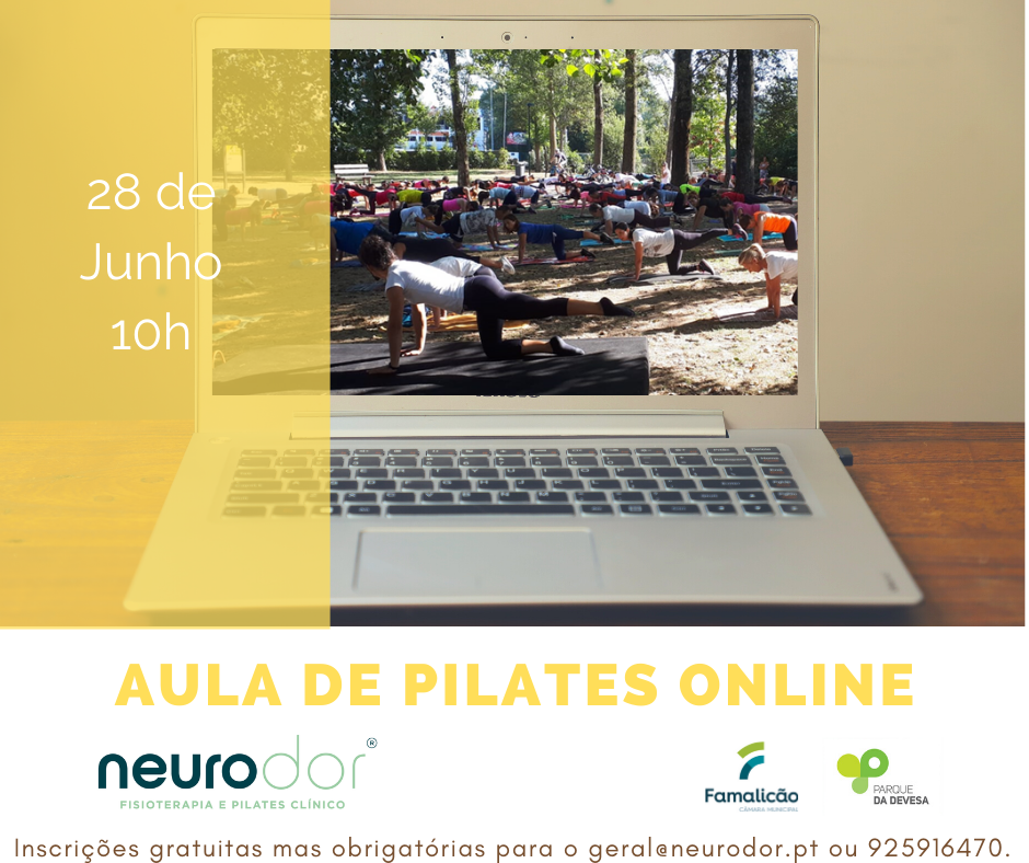 Aula de pilates on line, promovida pela Neurodor.