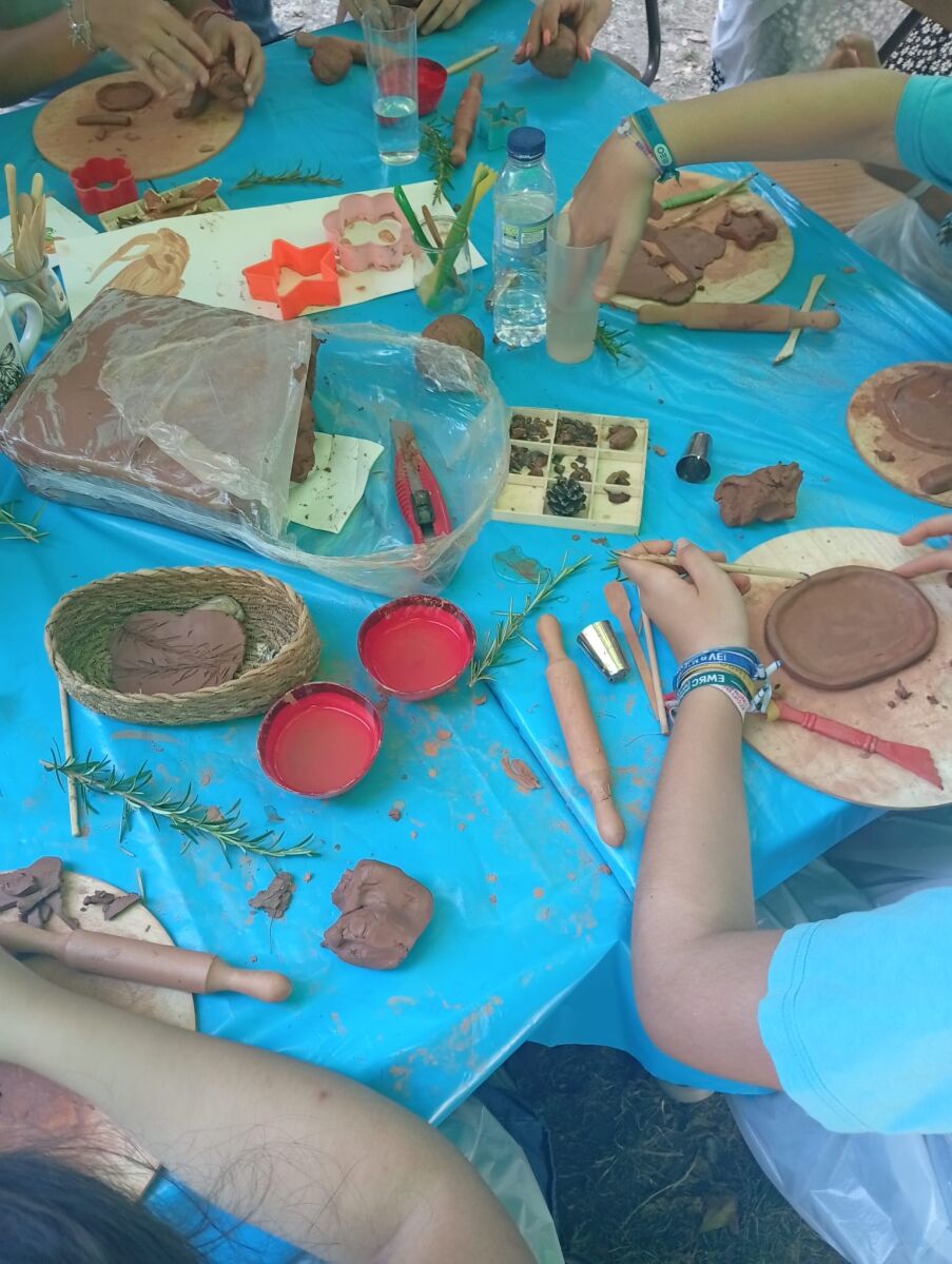 As crianças poderão criar pinturas rupestres com tintas naturais — terra, especiarias, cola branca e água — explorando-as em contexto caverna, no chão ou na mesa.